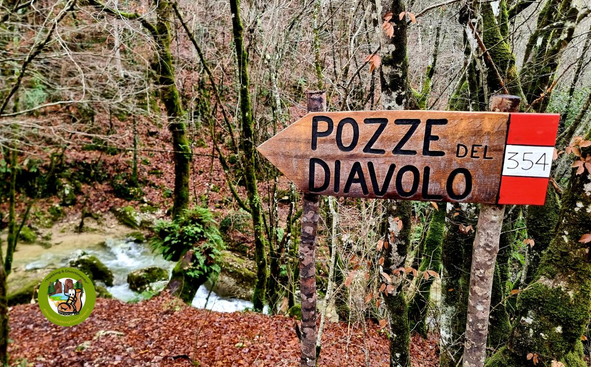 La discesa sarà sul versante opposto verso nord in cui attraverseremo boschi e immensi prati, lungo il bucolico fosso dell'Osteria per giungere poi in quel piccolo paradiso in cui le verdi e limpide acque del torrente formano rivoli, giochi d'acqua e cascate davvero spettacolari, anche nel nome: Le Pozze del Diavolo.