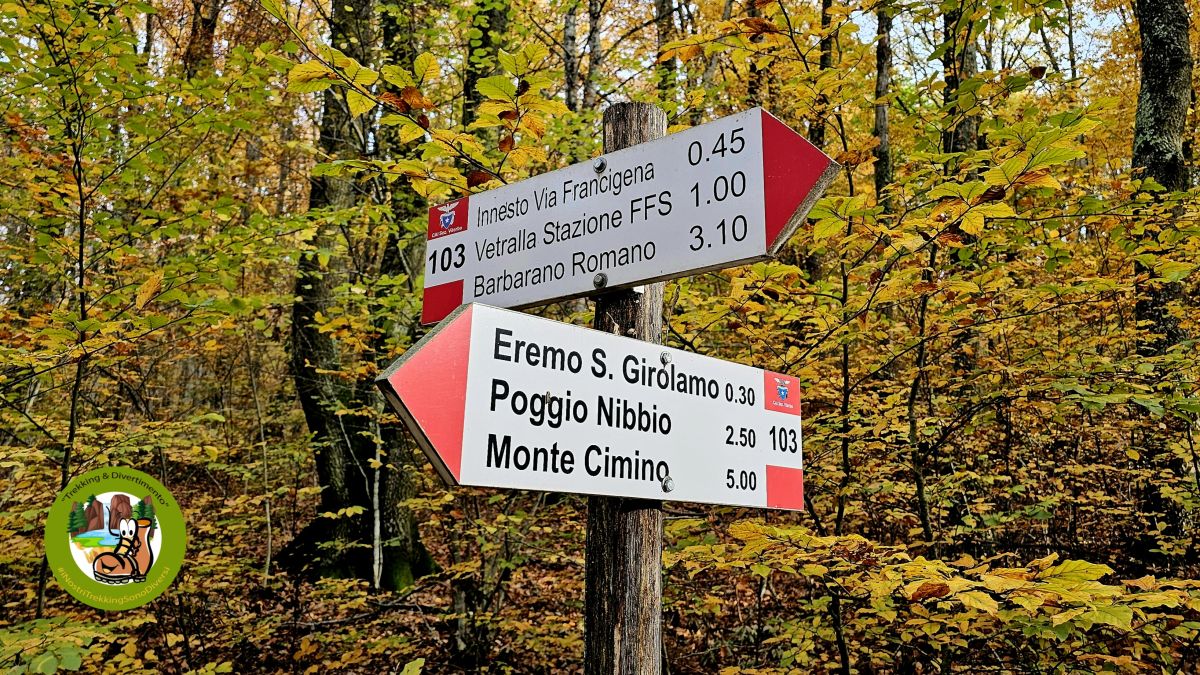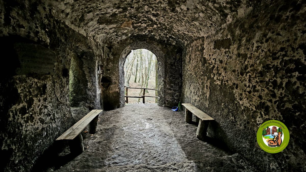 Tutto ciò sarà condito con la progressiva salita a una delle vette che sovrastano la caldera vulcanica del Lago di Vico (il Monte Fogliano) e la discesa sul lato opposto che sarà un continuo di piccole sorprese nella splendida faggeta del Bosco di Sant’Angelo con il clou all’Eremo Rupestre di San Girolamo del XVI secolo quasi interamente scavato e scolpito nella roccia.
